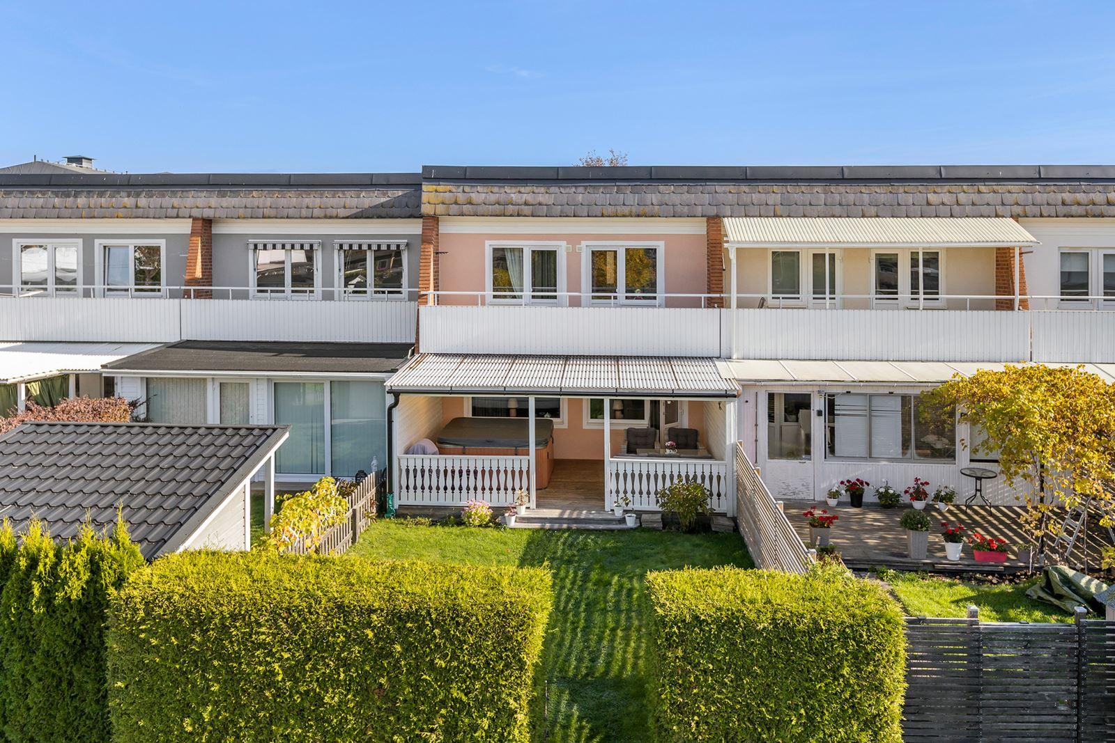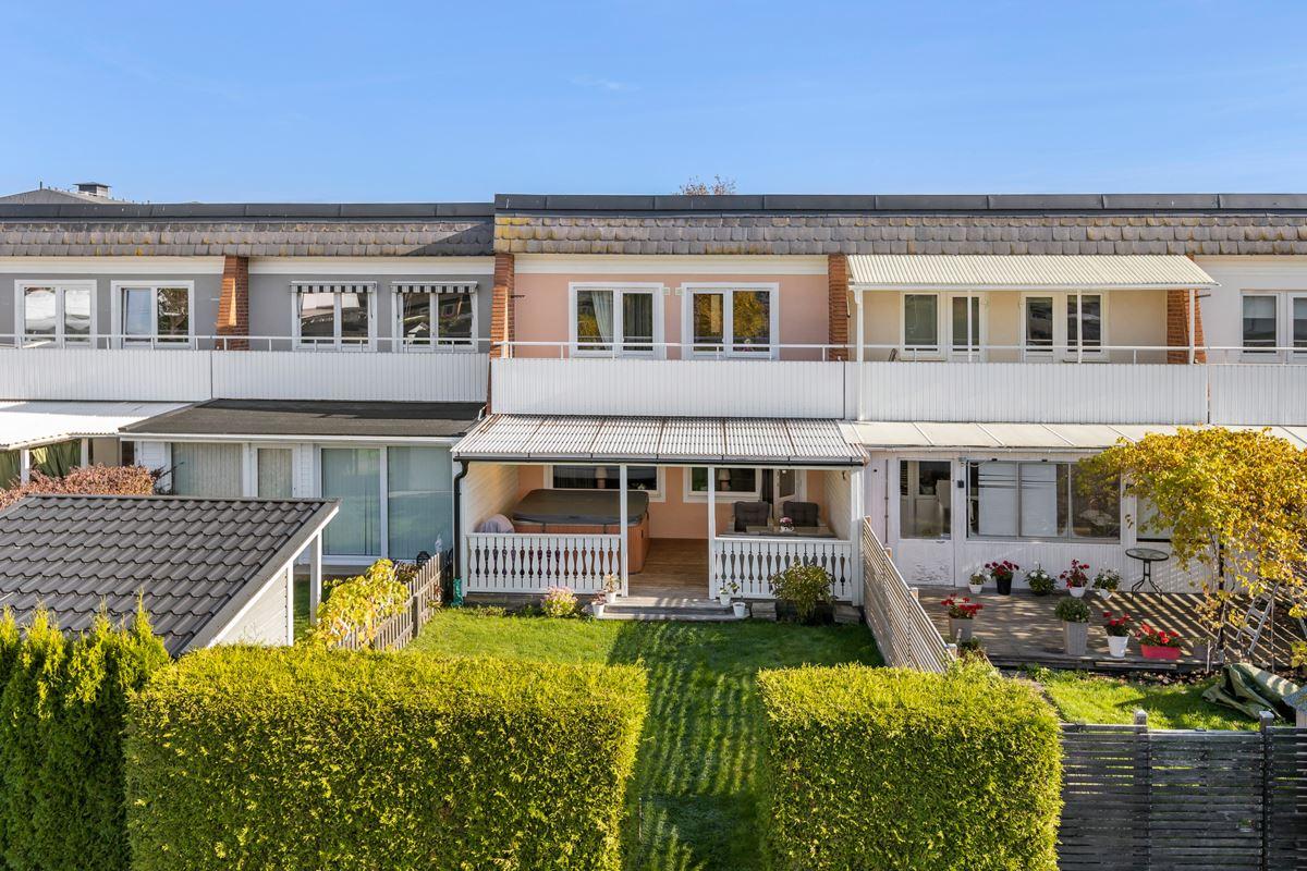Välkommen till denna renoverade och fräscha radhus i 2 plan med inredd källare och ett extra förråd om ca 20 m². Genomgående renoverat under innehavstiden såsom kök, duschrum, wc och fönsterbyte m m. Här har du en härlig baksida med fri utsikt utan insyn samt en välbyggd altan med ett utespa för att avnjuta eftermiddags solen. Ett perfekt boende för den som söker ett bekvämt boende utan att behöva förta sig, utan bara njuta.