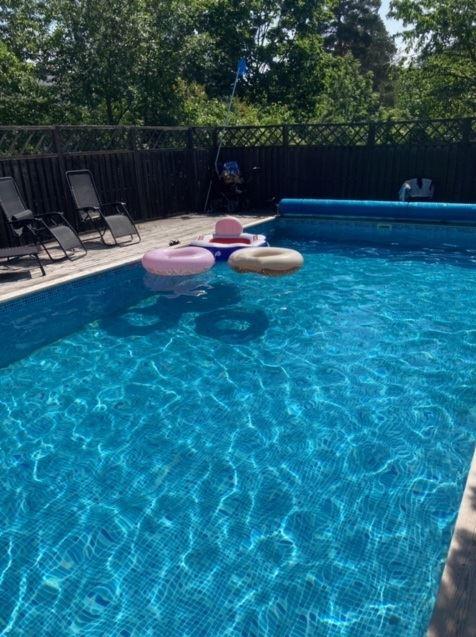 Fina lekytor, stort trädäck och en uppvärmd pool att njuta i på dina lediga stunder.