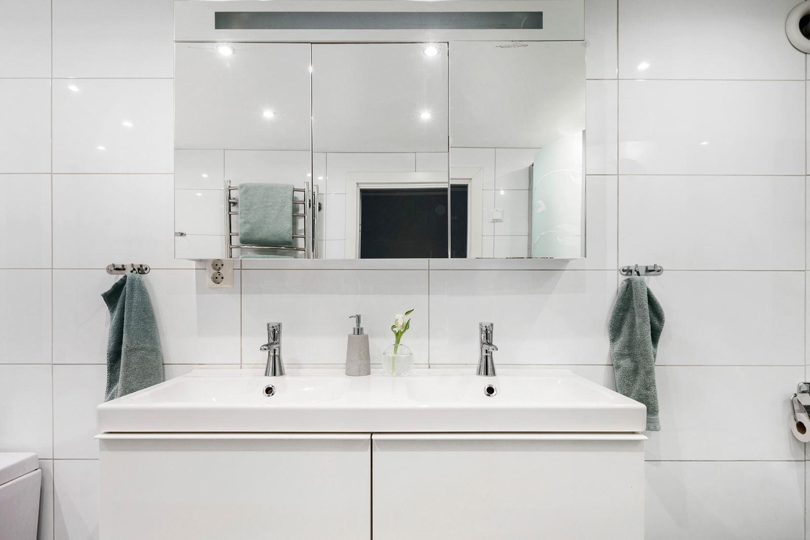 Smakfullt helrenoverat radhus med påkostade material och proffsigt utförda arbeten! Ett av Finspångs mest attraktiva lägen vid återvändsgata i "Vita Stan". Lättskött tomt med altandäck på både fram-och baksida, gräsmatta och stenläggningar på entrésidan, baksidan vetter mot en kulle med ett litet skogsparti. Välutrustat Epoque-kök från 2019 med praktiskt skafferi intill. Vardagsrum med med täljstenskamin som verkligen höjer mysfaktorn. Wc och dusch i entréplan, spaavdelning med både WC, hörndusch, kommod med dubbla tvättställ och stort bubbelbadkar i souterrängplanet. Här behövs ingen renovering! Flytta in, häng upp Dina tavlor och bara njut direkt. Garage med eldriven port. Närhet till Medley, grönområden, lekplatser, skola, förskola, pizzeria och affärer. Varmt välkomna på visning!